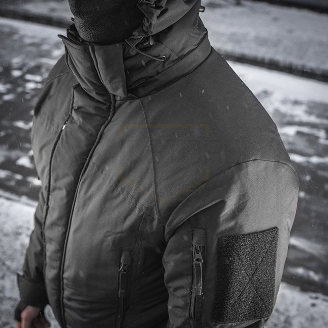Die M-Tac Alpha Extreme Winterjacke Gen.III in Schwarz XL ist eine taktische Urbanjacke, die für Strafverfolgungs- und Sicherheitsbehörden entwickelt wurde. Sie verfügt über einen verstellbaren Kragen mit gepolsterter Kapuze, Fleecebündchen und wind- und