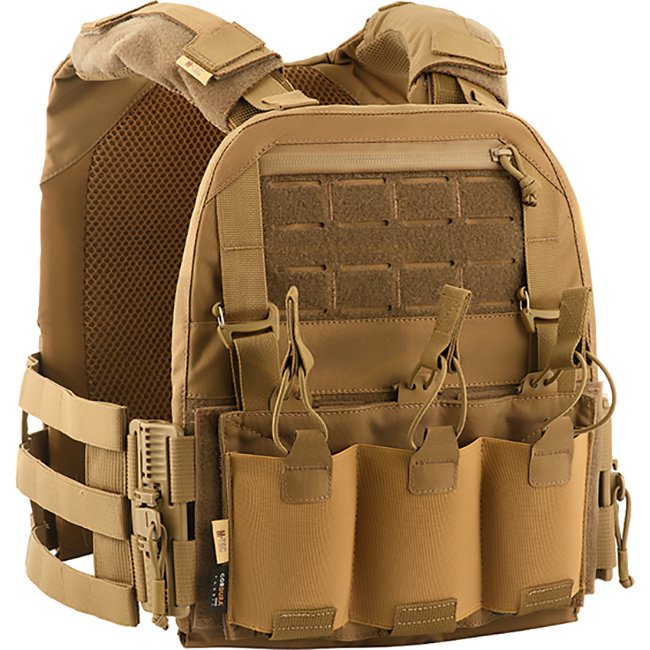 M-Tac Cuirass Plate Carrier QRS - Coyote: Evolutionärer Plattenträger mit Schnellfreigabesystem, modularen Taschen und Cordura-Materialien. Kompatibel mit SAPI & ESAPI Größe Medium.