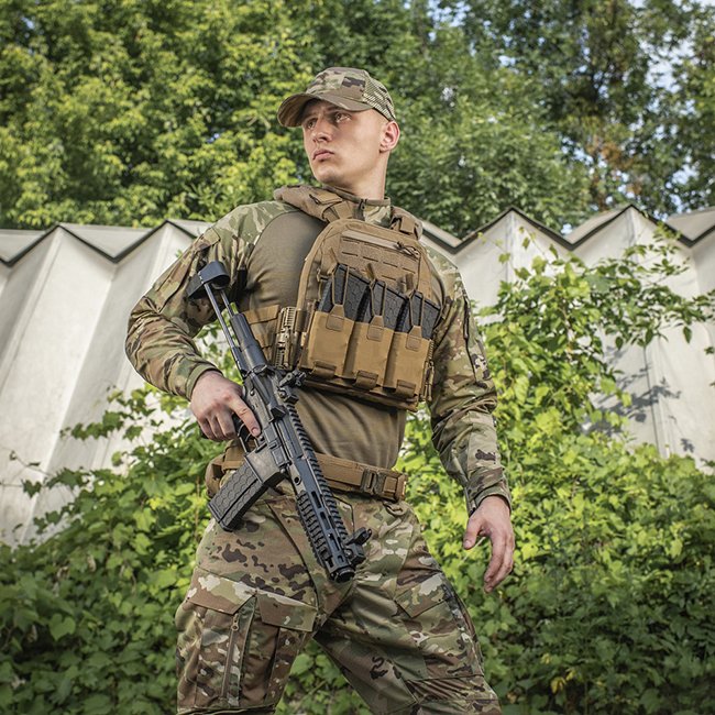 Der Plate Carrier Cuirass QRS markiert eine Evolutionsstufe in der Entwicklung der Plattenträgerlinie der ukrainischen Marke M-Tac. Das neue Design mit Schnellverschlusssystem, modularen Taschen auf der Vorderseite, ein skelettierter Kummerbund kombiniert mit zuverlässigen Cordura Materialien machen diesen Plattenträger zu einer würdigen Wahl.