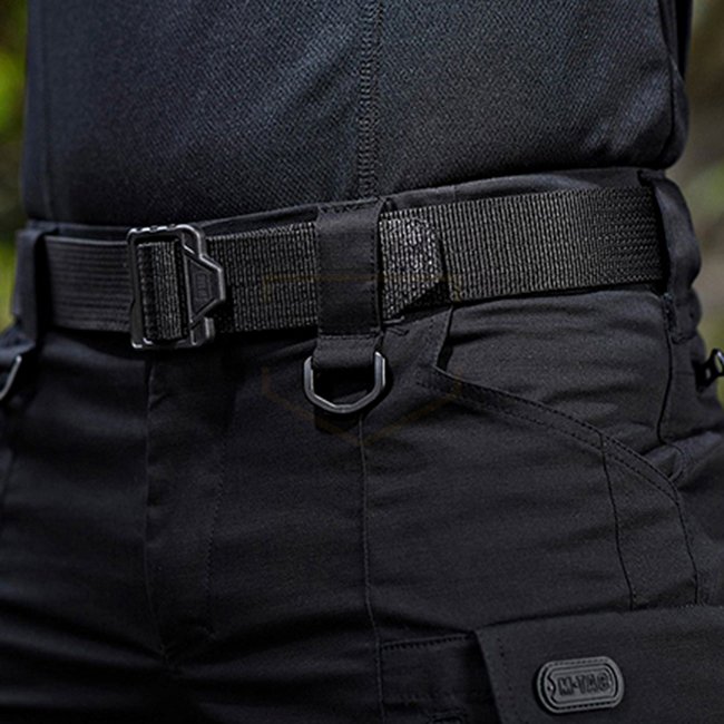 Der M-Tac Double Duty Taktische Gürtel in Schwarz ist ein strapazierfähiger Gürtel für den langfristigen Einsatz, hergestellt aus zwei Nylon-Gurten, die mit einem starken Faden vernäht sind. Perfekt für das Tragen von Holstern und Taschen, verfügt er über