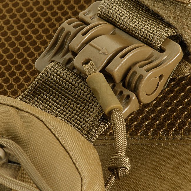 Der M-Tac Plate Carrier Cuirass FAST QRS - Coyote verfügt über ein Schnellverschlusssystem, modulare Fronttaschen und einen skelettierten Kummerbund. Hergestellt aus Cordura-Materialien, ist es eine zuverlässige Wahl für Ihre taktischen Bedürfnisse.