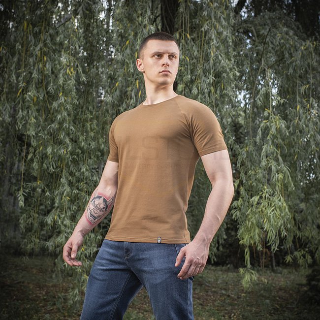 Das M-Tac Raglan T-Shirt 93/7 in Coyote ist ideal für den täglichen Gebrauch mit seinem bequemen Raglanärmelschnitt, der Scheuern verhindert.