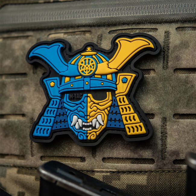 M-Tac Samurai Maske Gummipatch mit PVC-Vorderseite und Hakenflächenrückseite. Abmessungen: 95 x 75 mm.