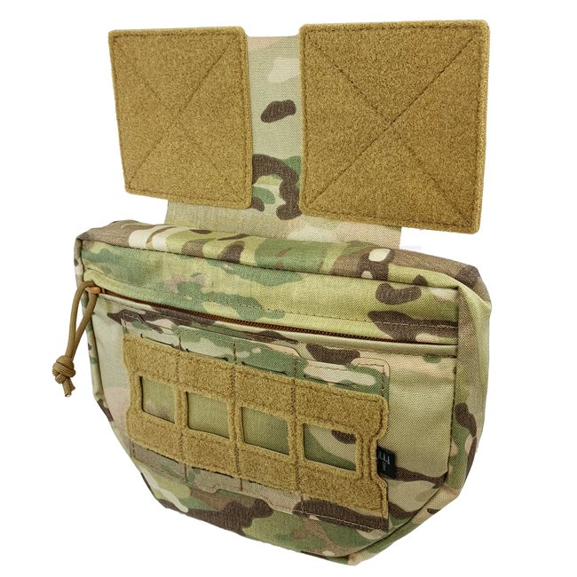 Die Drop Fanny Protector Tasche ist eine vielseitige Erweiterung für Westen, Plattenträger und Brustgeschirre. Sie verfügt über eine Vordertasche mit Klettverschluss für Zubehör, laser-geschnittene MOLLE-Schlaufen und ein Fach für ein Level IIIA Weichpanz