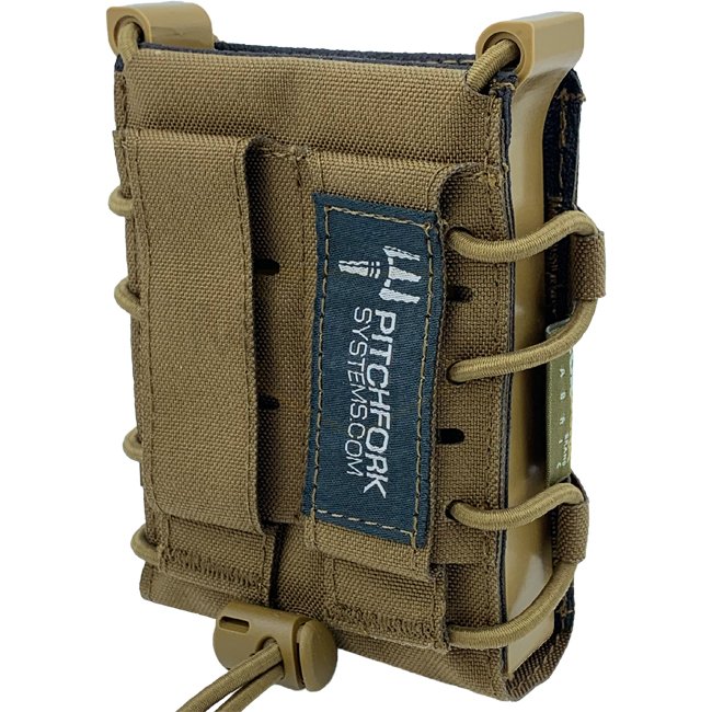 Pitchfork FLEX Einzel-Magazintasche für Gewehre - Coyote: Flexible Seiten, um verschiedene Gewehrmagazine wie AR15, AK47, SIG55x, G36 und mehr zu halten. Einstellbarer Ziehwiderstand mit Kordelstopper. Anti-Rutsch-Innenfutter für besseren Halt. Gefertigt