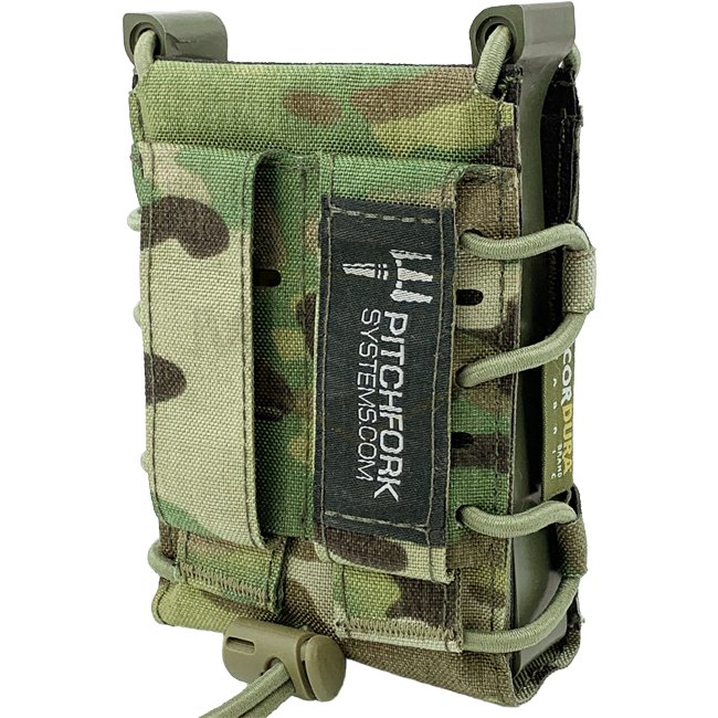 Hochgradig vielseitige Pitchfork FLEX Einzel-Magazintasche für Gewehre in Multicam mit flexiblen Seiten & U-Rahmen. Passt für verschiedene Gewehrmagazine inkl. AR15, AK47, AK74, SIG55x, G36 & HK417. Mit einstellbarem Ziehwiderstand & rutschfester Auskleid