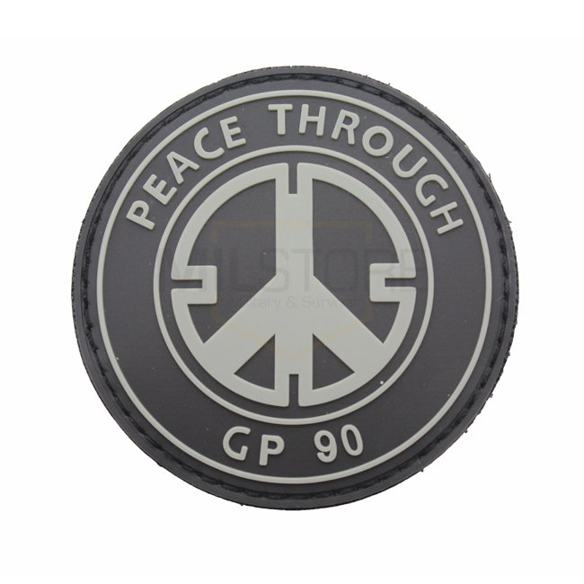 Pitchfork Peace Through GP90 Aufnäher - Swat: Einzigartiges Design mit den Abmessungen 70 x 70mm.