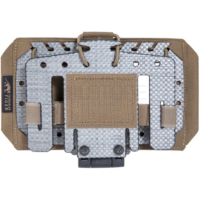 Die TT Foldable Phone Plate ist als horizontale Halterung für Smartphones auf Höhe der Brust konzipiert. Ihr aus 12-lagigem Tegris® gefertigter Kern lässt sich nach vorne klappen und wird durch individuell geschlungene Bungee-Kordeln sicher fixiert.