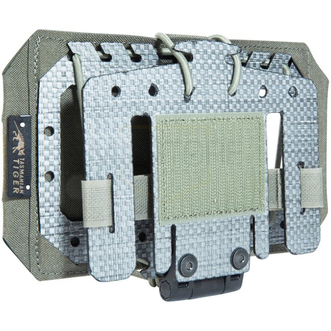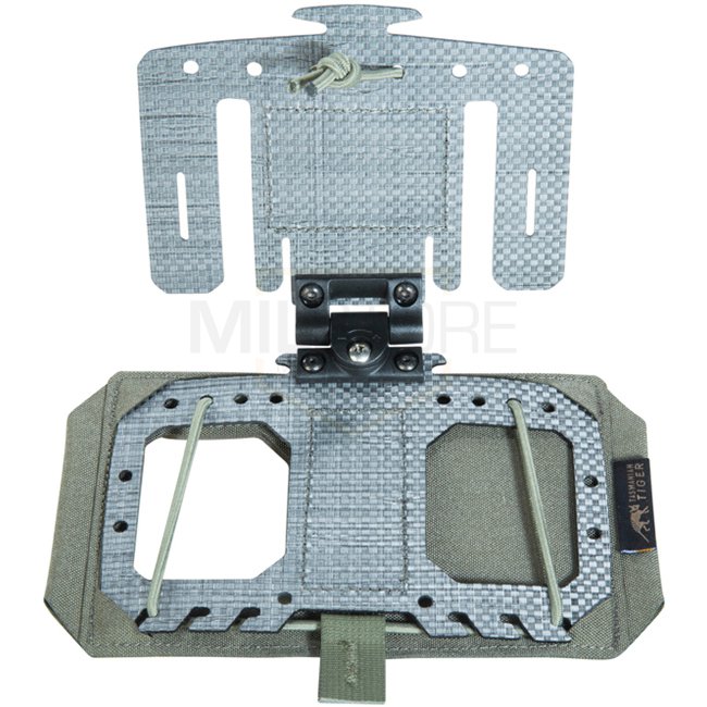 Die TT Foldable Phone Plate IRR ist eine horizontale Halterung zur Befestigung am Brustbereich von Plattenträgern. Aus einem 12-lagigen Tegris®-Kern gefertigt, lässt sich die Platte nach vorne klappen. Der Smartphone-Haltebereich wird durch individuell geschlungene Bungee-Kordeln fixiert. Alle Materialien, Klettflächen und Schnallen erfüllen die IRR-Normen TL 8305-0278/TL 8305-0281 im Spektralbereich von 650–1250 nm (10–42 %) für reduzierte Infrarot-Signatur.
