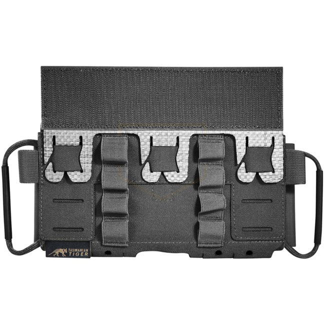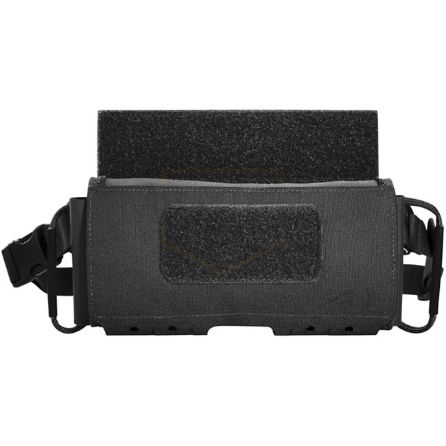 Die robuste Erste-Hilfe-Tasche ist entworfen zur Befestigung unter einem Plattenträger oder alternativ als Hüfttasche nutzbar. Ein abnehmbares Verbindungsteil aus einer Klett-Tegris®-Platte kann beidseitig genutzt werden. Die herausziehbare Innenplatte erlaubt schnellen Zugriff und individuelle Organisation.