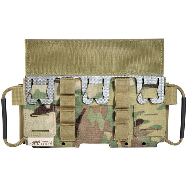 Die kompakte Erste-Hilfe-Tasche in Multicam kann unter einem Plattenträger befestigt oder als Hüfttasche getragen werden. Die abnehmbare Verbindungsplatte aus Tegris® mit Klettfläche ist beidseitig nutzbar. Das herausziehbare Innenpanel sorgt für schnellen Zugriff und flexible Organisation.