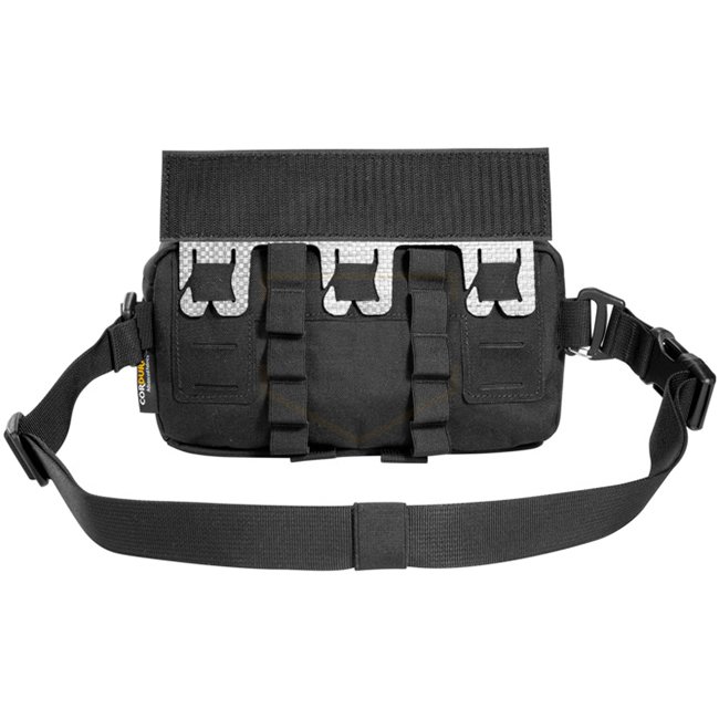 Diese multifunktionale Tasche lässt sich unter einem Plattenträger anbringen oder als Hüfttasche nutzen – ideal zur Erweiterung von Tragesystemen mit geringem Profil.