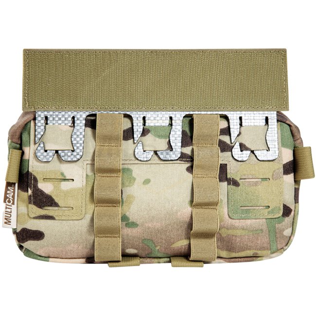 Diese multifunktionale Tasche kann unter einem Plattenträger befestigt oder als Hüfttasche getragen werden. Ideal als low-profile Erweiterung von Tragesystemen mit hoher Vielseitigkeit.