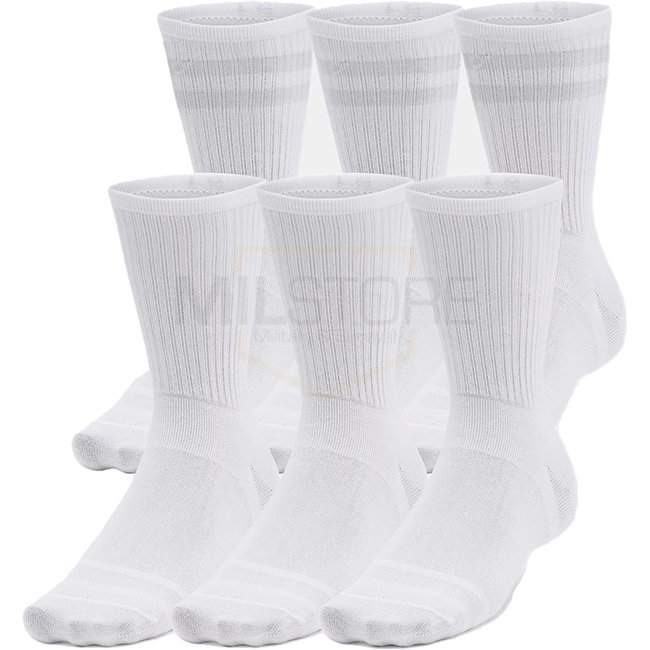 • Under Armour Essential Unisex 6-Pack Crew Socks - White / White / Halo Grey - M