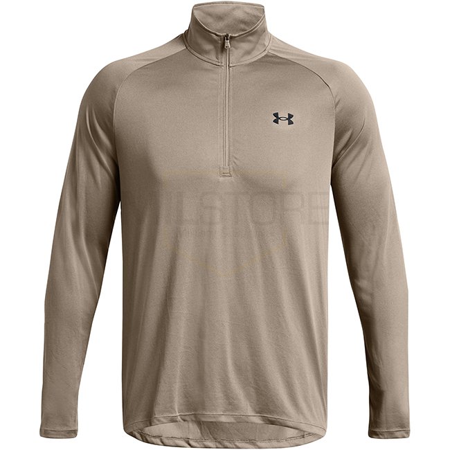 Under Armour Mens Tech 1/2 Zip Long Sleeve - Taupe Dusk / Black - S